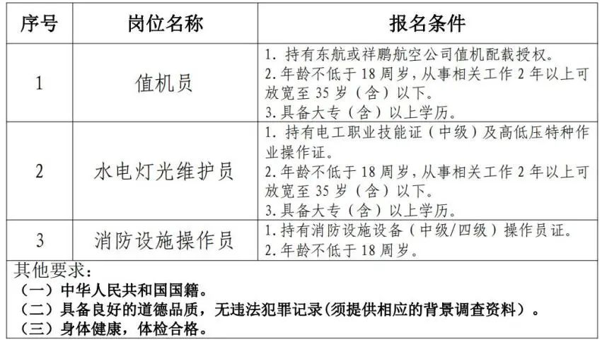 (一)值機(jī)員、水電燈光維護(hù)員崗位僅在滄源機(jī)場(chǎng)業(yè)務(wù)外包人員內(nèi)招聘。
