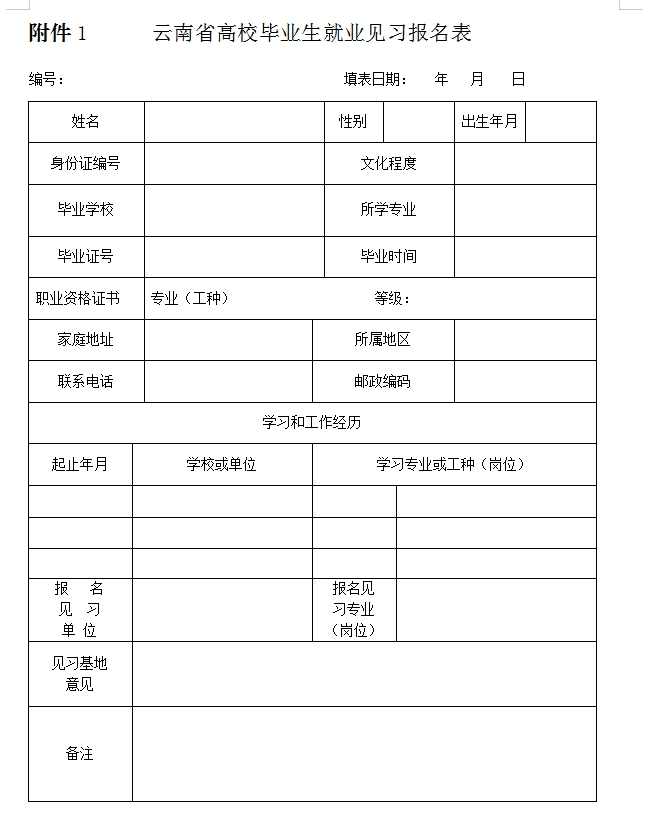 附件:1.云南省高校畢業(yè)生就業(yè)見習(xí)報(bào)名表