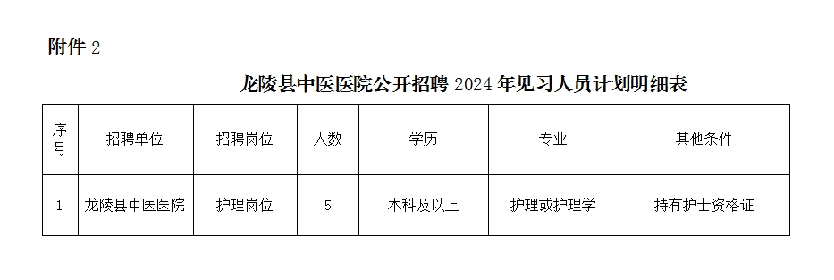 2.龍陵縣中醫(yī)醫(yī)院公開招聘2024年見習(xí)人員計(jì)劃明細(xì)表