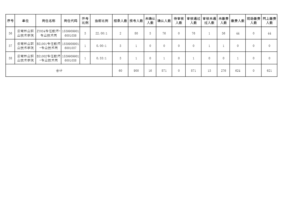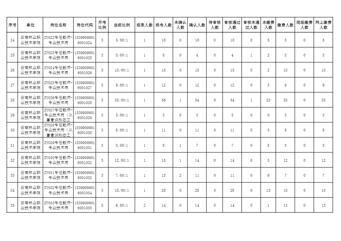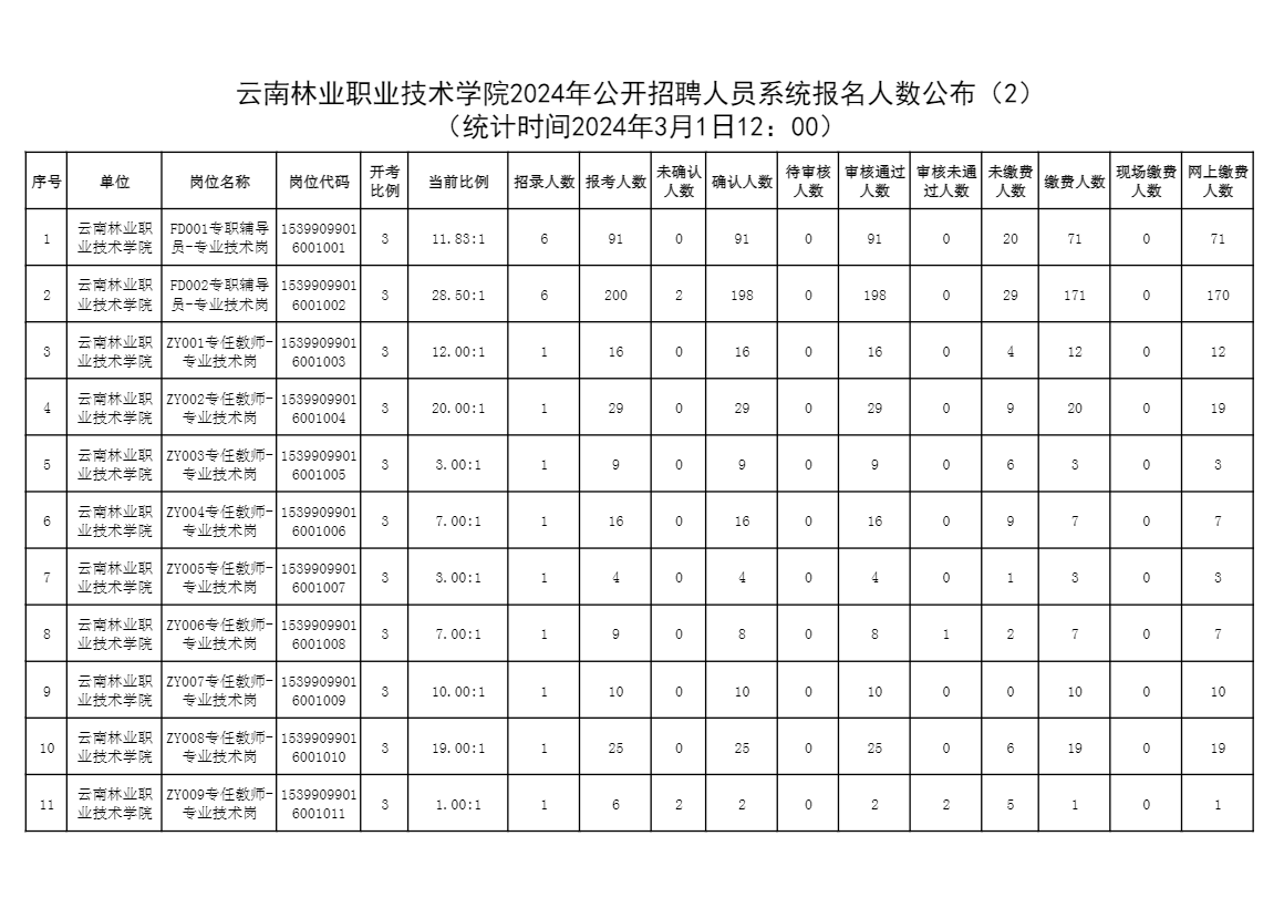云南林業(yè)職業(yè)技術(shù)學(xué)院2024年公開招聘人員系統(tǒng)報名人數(shù)公布