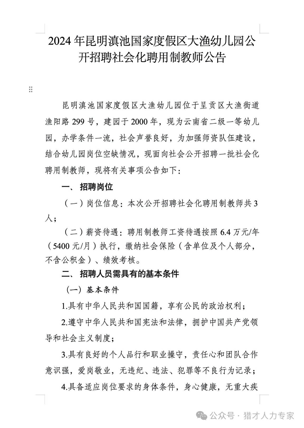 2024年昆明滇池國家度假區(qū)大漁幼兒園公開招聘社會(huì)化聘用制教師公告