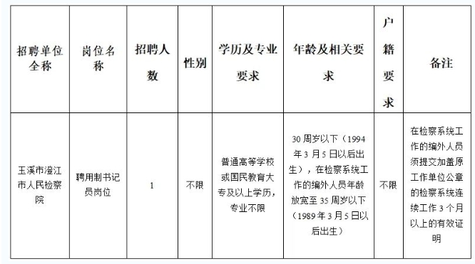 根據(jù)工作需要,按照《云南省各級人民法院、人民檢察院聘用制書記員管理制度改革實施辦法(試行)》《云南省檢察機關(guān)考試招聘聘用制書記員實施辦法(試行)》的有關(guān)規(guī)定,玉溪市澄江市人民檢察院委托澄江市啟澄人力資源有限責(zé)任公司面向社會公開招聘聘用制書記員,現(xiàn)將有關(guān)事項公告如下: