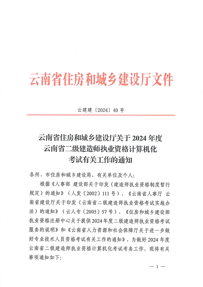 云南省住房和城鄉(xiāng)建設(shè)廳 關(guān)于2024年度云南省二級(jí)建造師執(zhí)業(yè)資格計(jì)算機(jī)化考試有關(guān)工作的通知 來源:https://zfcxjst.yn.gov.cn/gongzuodongtai2/gongshigonggao4/290663.html