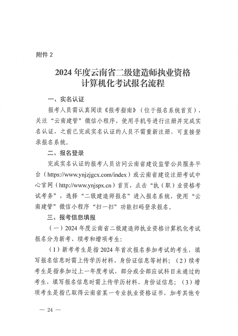 2024年云南省二級(jí)建造師執(zhí)業(yè)資格計(jì)算機(jī)化考試有關(guān)工作通知