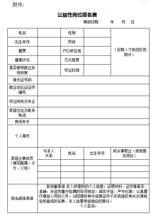 (一)招聘人數(shù):公益性崗位工作人員2名。