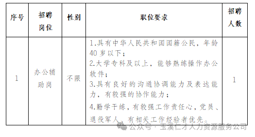 因公司發(fā)展需要,玉溪興誠會(huì)計(jì)服務(wù)有限公司委托玉溪仁才人力資源服務(wù)有限責(zé)任公司面向社會(huì)公開招聘勞務(wù)派遣工作人員1名,現(xiàn)將有關(guān)事宜公告如下: