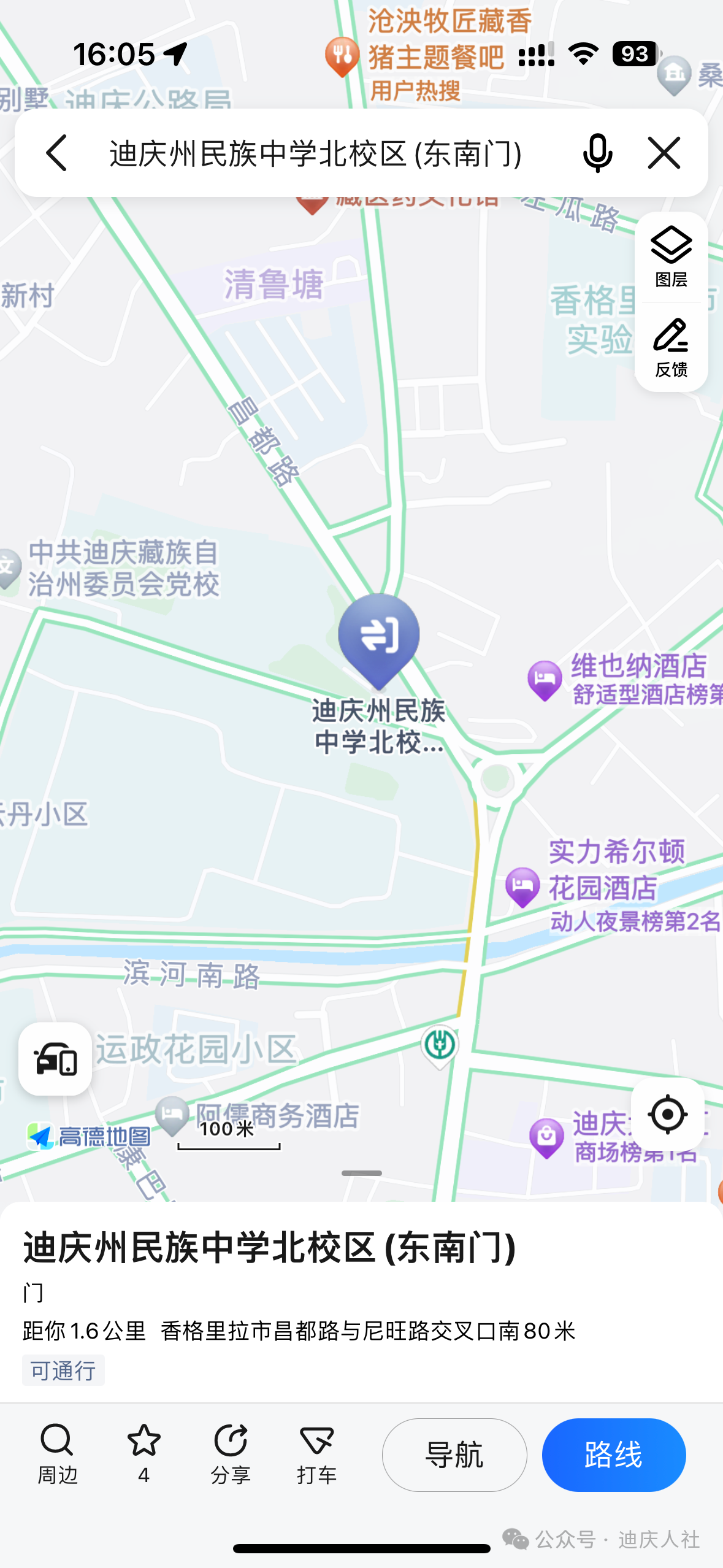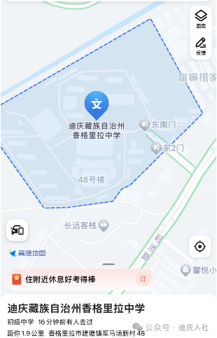 迪慶州第一中學(xué)考點(diǎn)(圖中“迪慶州民族中學(xué)北校...”字樣定位為入口):