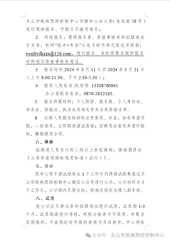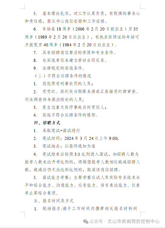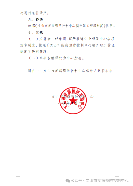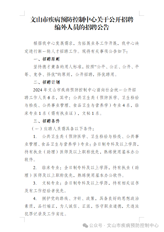 文山市疾病預(yù)防控制中心關(guān)于公開招聘編外人員的招聘公告