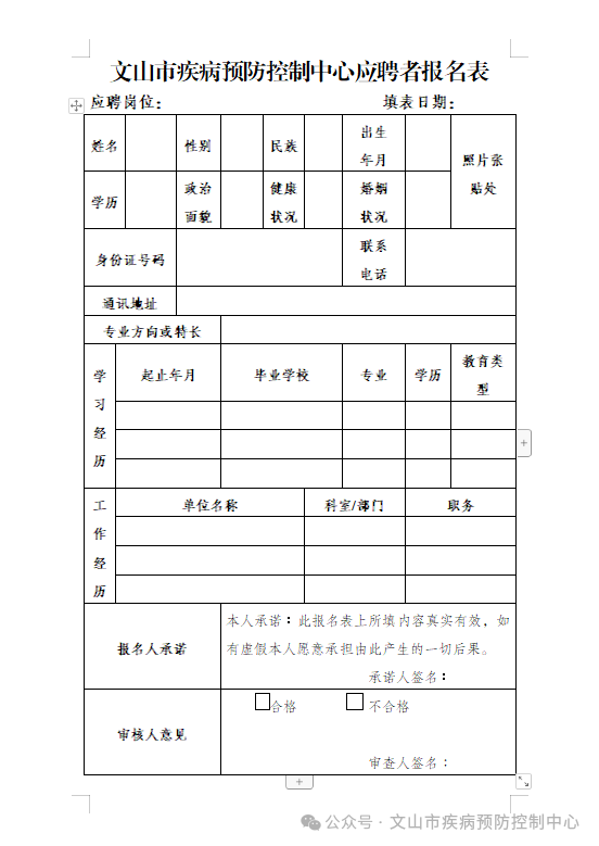 文山市疾病預(yù)防控制中心應(yīng)聘者報名表.docx