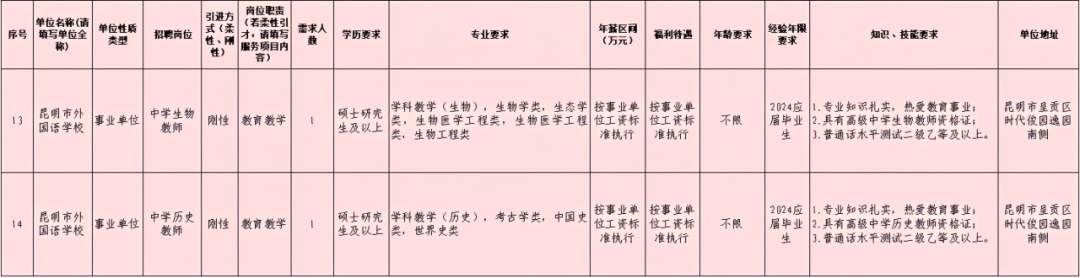 具體詳見《昆明市教育體育局直屬學(xué)校(單位)開展“志向昆明乘風(fēng)春歸”全國引才活動招聘目標(biāo)院?!罚ǜ郊?)