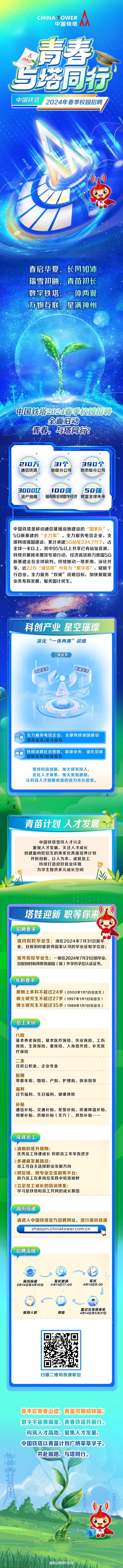 2024年中國鐵塔春季校園招聘正式啟動! 來源:https://mp.weixin.qq.com/s/my0HgZA-OyG04sKv1Twssg