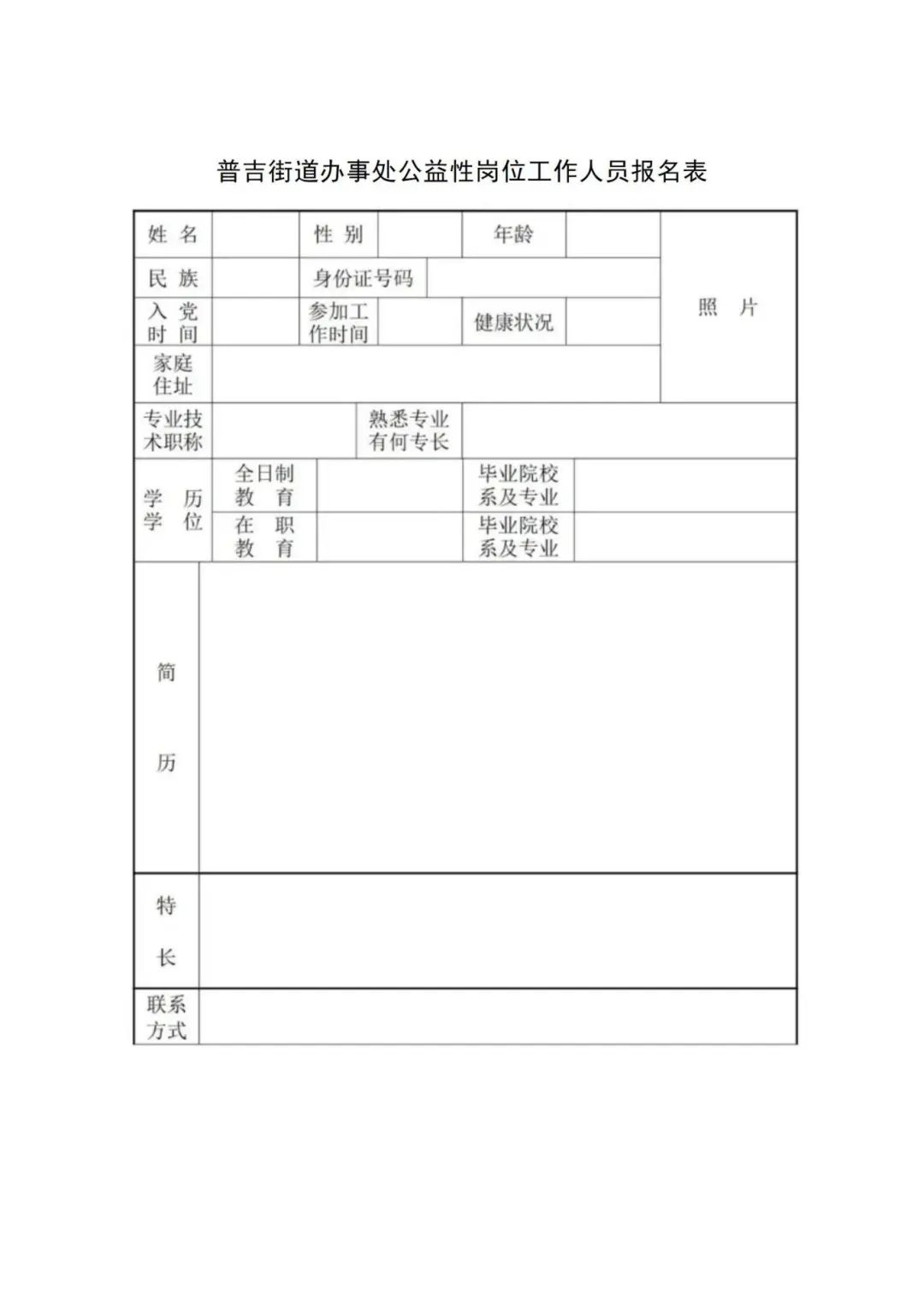 附件:普吉街道辦事處公益性崗位工作人員報名表