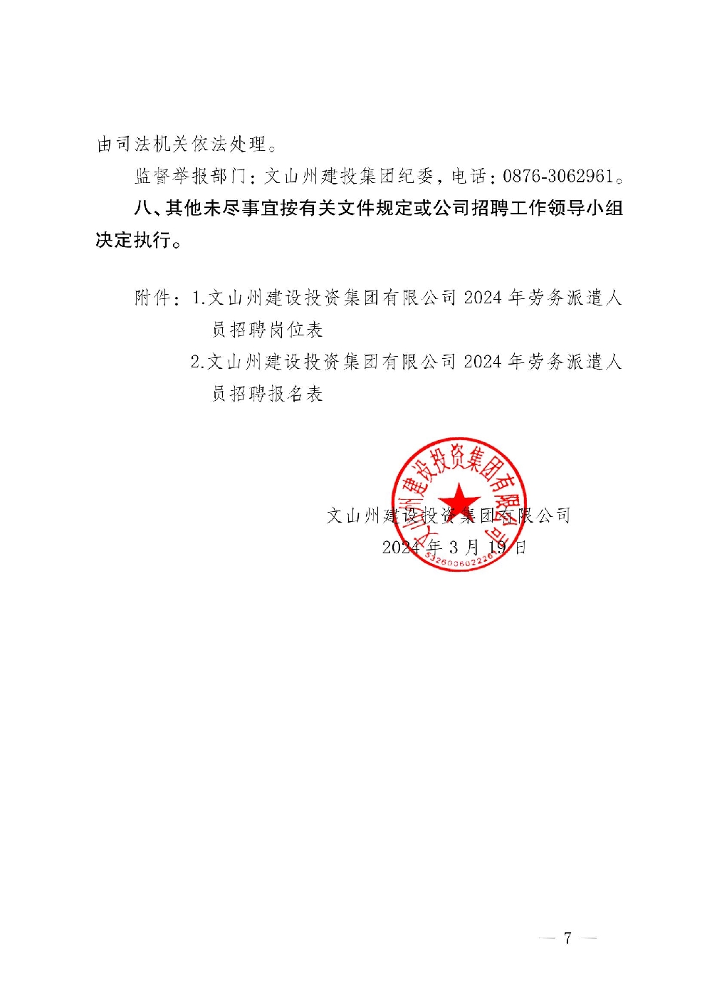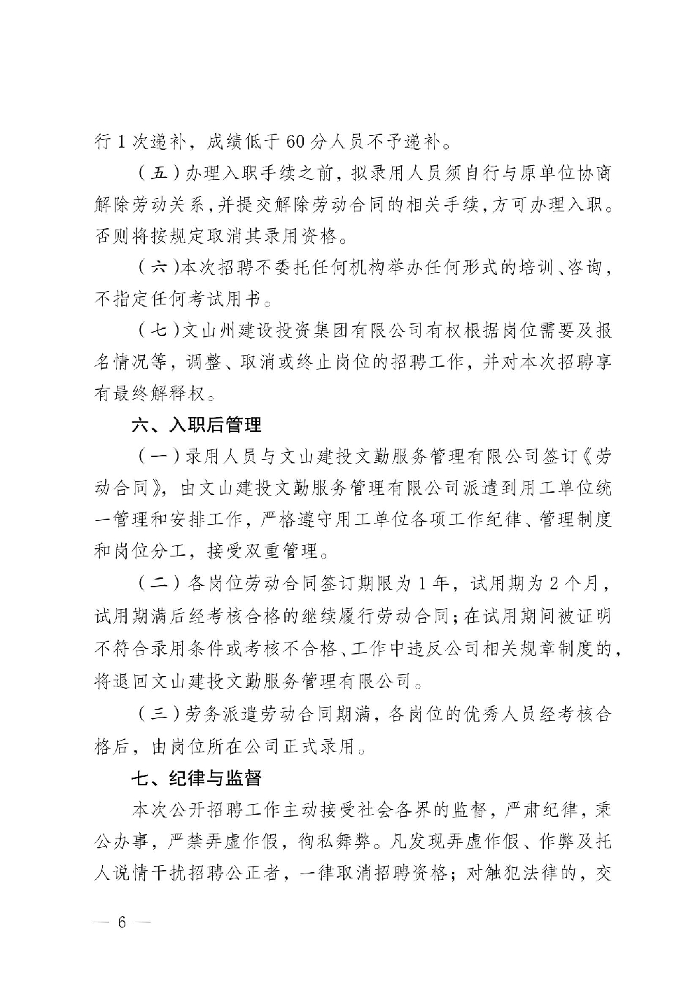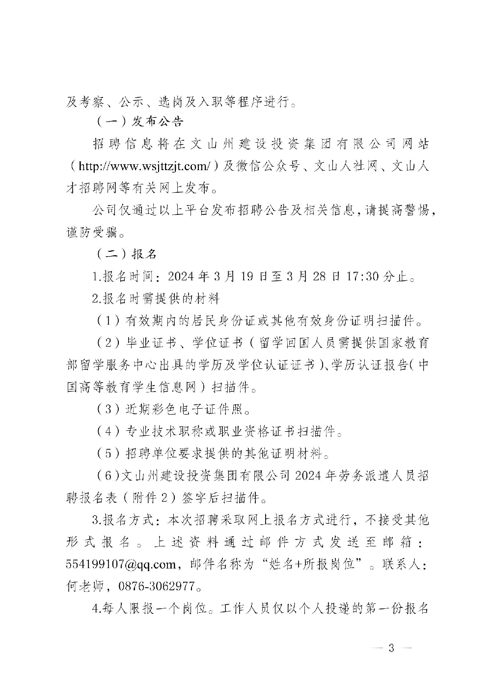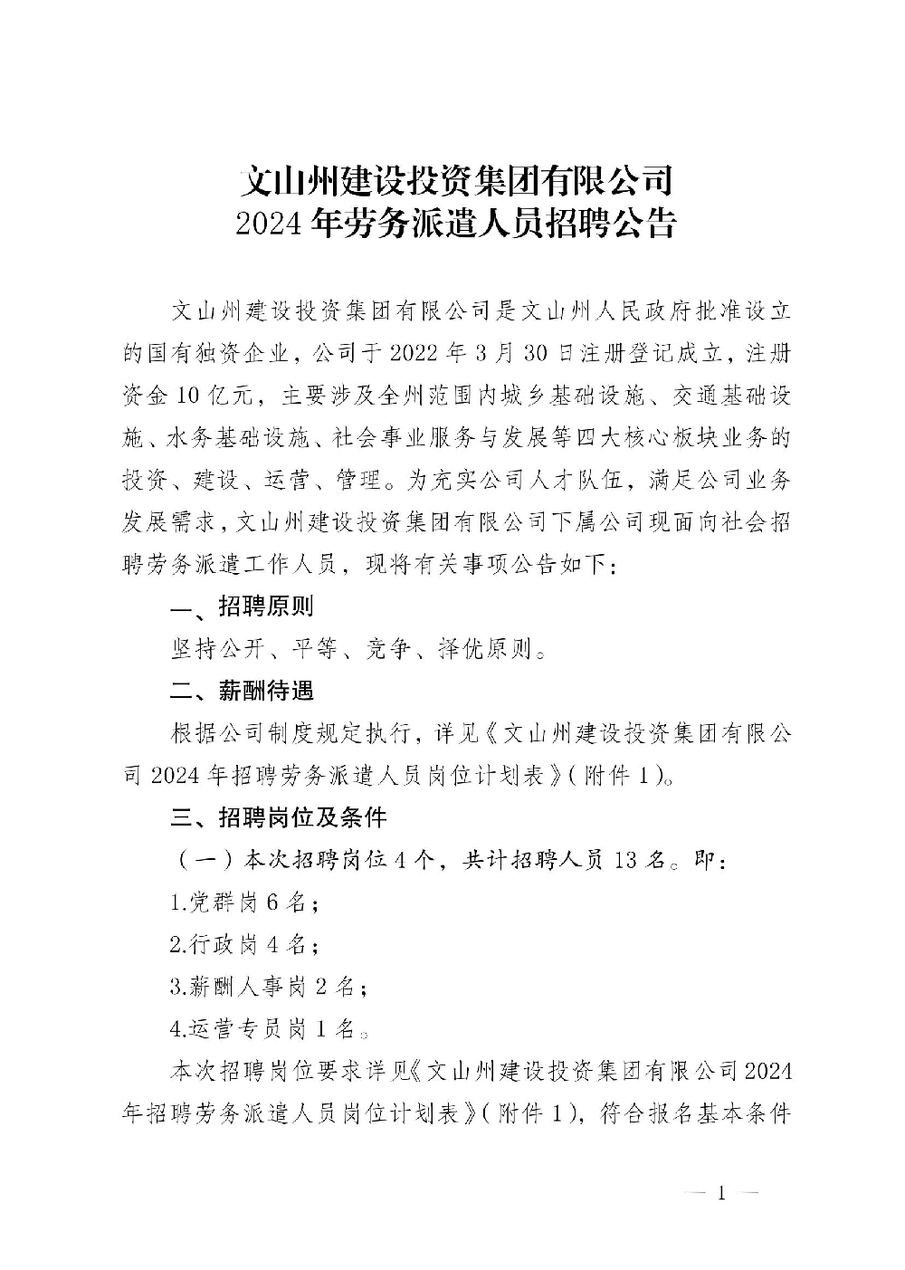 文山州建設(shè)投資集團(tuán)有限公司 2024年勞務(wù)派遣人員招聘崗位表 |