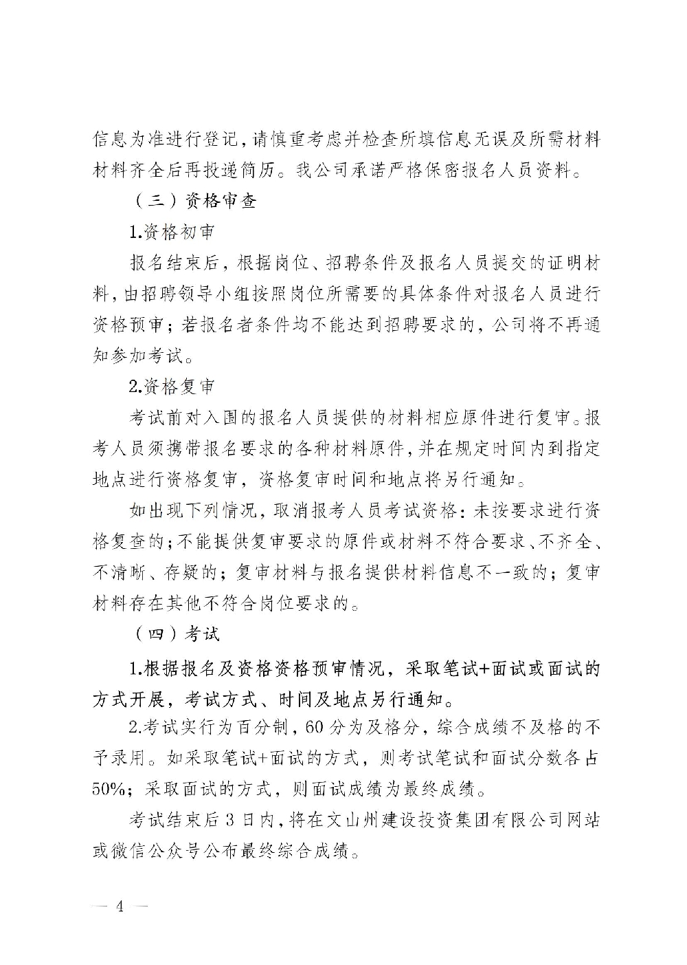 二級公司文山州交通發(fā)展有限公司2人,二級公司文山州城鄉(xiāng)建設(shè)發(fā)展有限公司、三級公司云南騰瓏檢測服務(wù)有限公司、文山恒澤水利水電工程有限公司、文山德厚水庫運行管理有限公司各1人,按成績從高到低選崗。 | 5000元左右/月(含五險) |