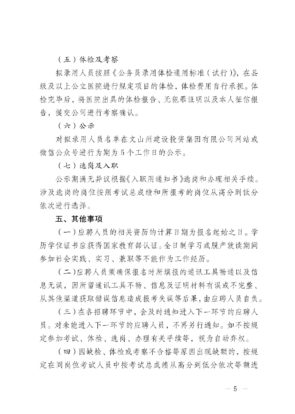 二級公司文山水利投資集團(tuán)有限公司、三級公司云南潤發(fā)商貿(mào)有限公司、文山州平文高速公路有限責(zé)任公司、文山交投集團(tuán)園林綠化工程有限公司各1人,按成績從高到低選崗。 | 5000元左右/月(含五險) | |
