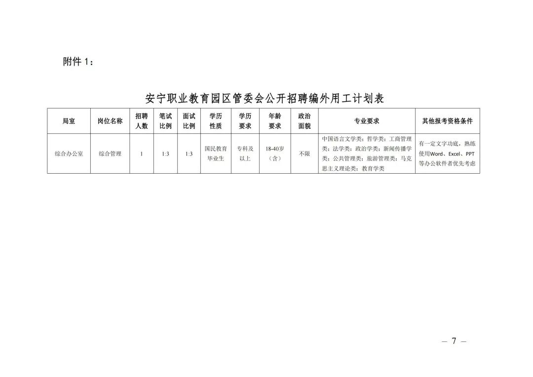 附件:1.安寧職業(yè)教育園區(qū)管委會公開招聘編外用工計劃