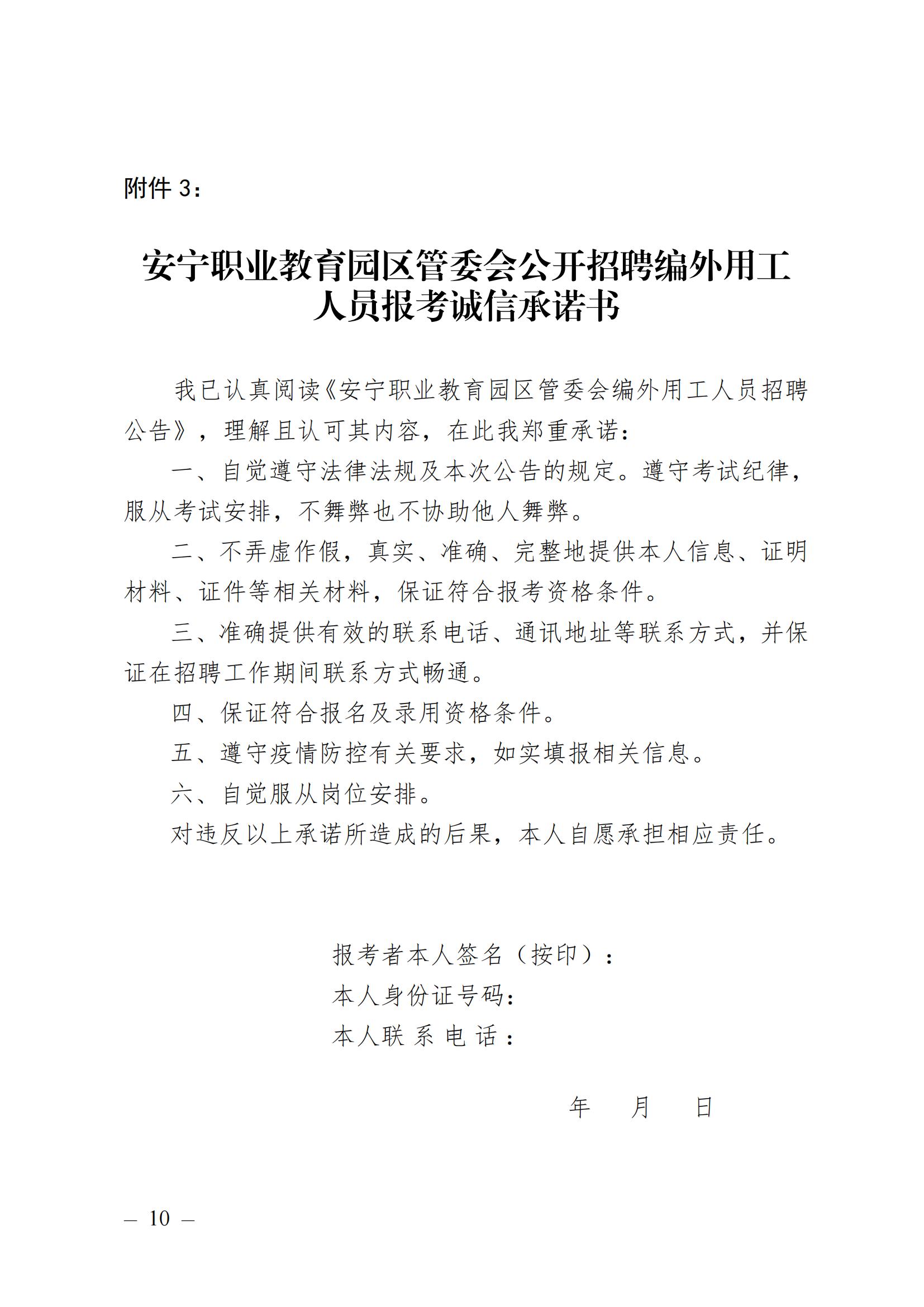 3.安寧職業(yè)教育園區(qū)管委會公開招聘編外用工人員報考誠信承諾書