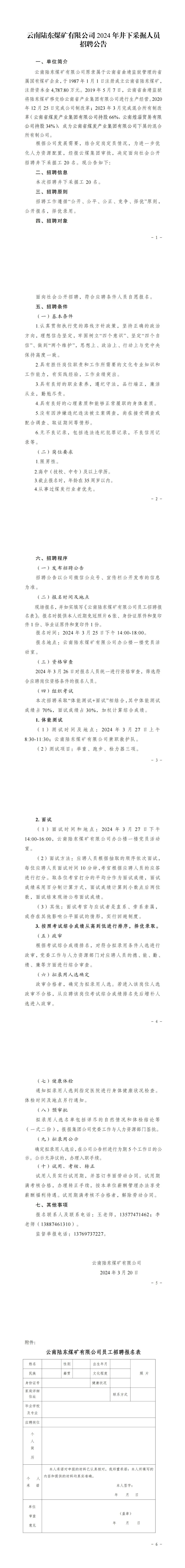 云南陸東煤礦有限公司2024年井下采掘人員招聘公告 來源:https://mp.weixin.qq.com/s/QzIg7azJAX8c9AOgkKtEqQ