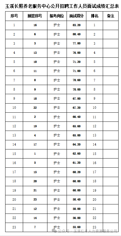 附件:玉溪長照養(yǎng)老服務(wù)中心公開招聘工作人員面試成績匯總表