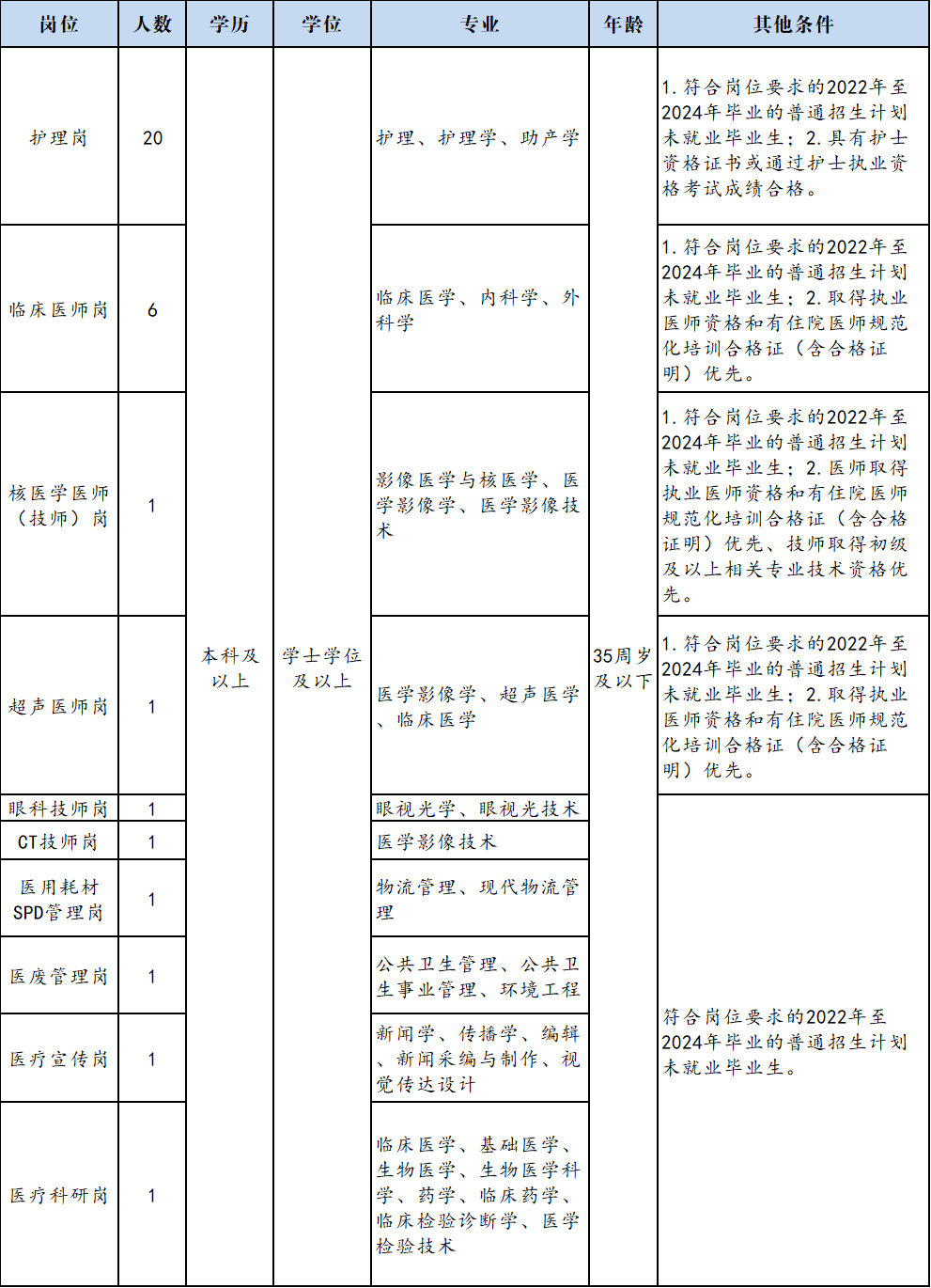 1.符合崗位要求的2022年至2024年畢業(yè)的普通招生計(jì)劃未就業(yè)畢業(yè)生,年齡計(jì)算截止報(bào)名當(dāng)天。