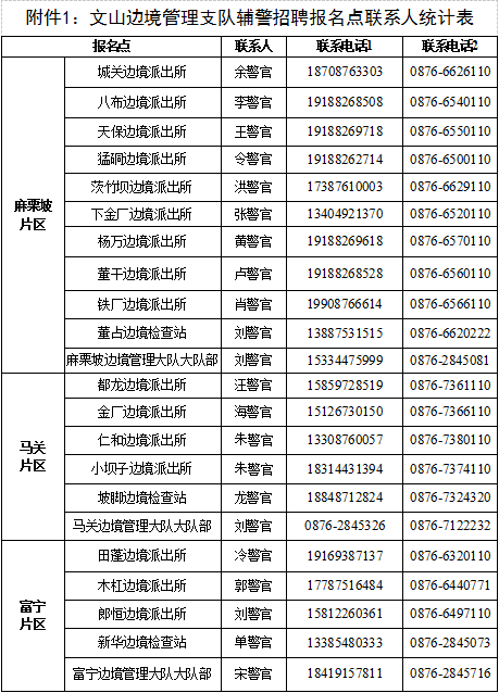附:1.文山邊境管理支隊輔警招聘報名點聯(lián)系方式
