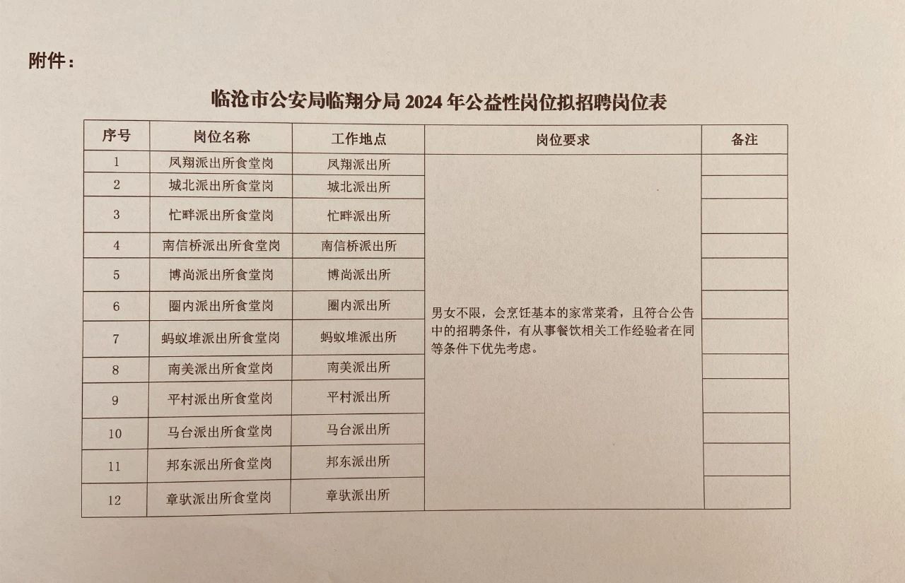 附件:臨滄市公安局臨翔分局2024年公益性崗位擬招聘崗位表