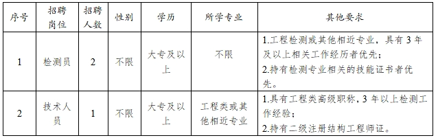 澄江智謙建設(shè)工程質(zhì)量檢測有限公司2024年公開招聘工作人員公告
