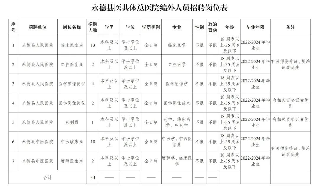 永德縣醫(yī)共體總醫(yī)院2024年度編外人員招聘公告