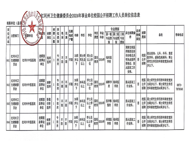 附件(點(diǎn)擊查看):1.紅河州衛(wèi)生健康委員會2024年事業(yè)單位校園公開招聘工作人員崗位信息表.pdf