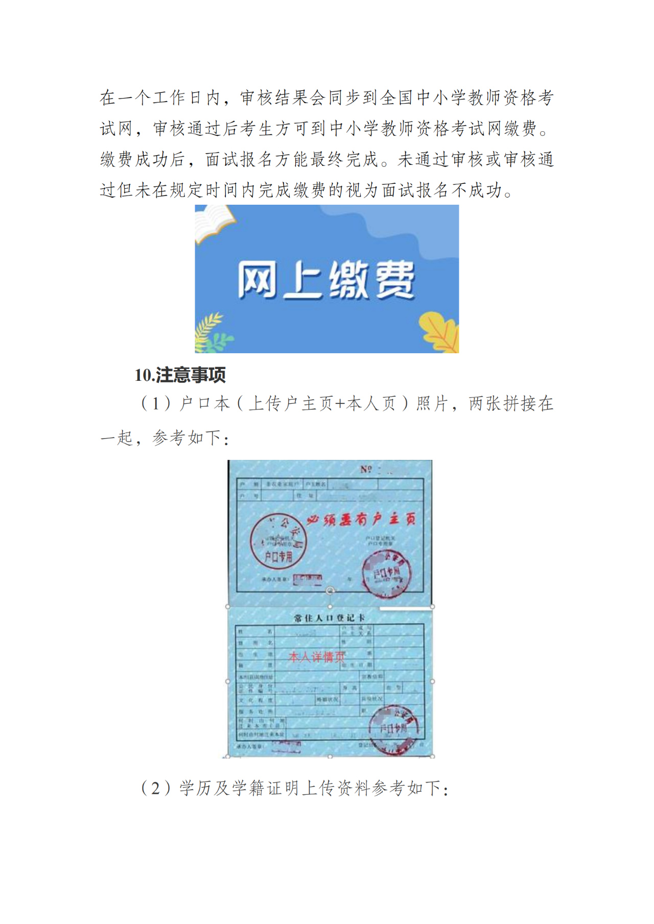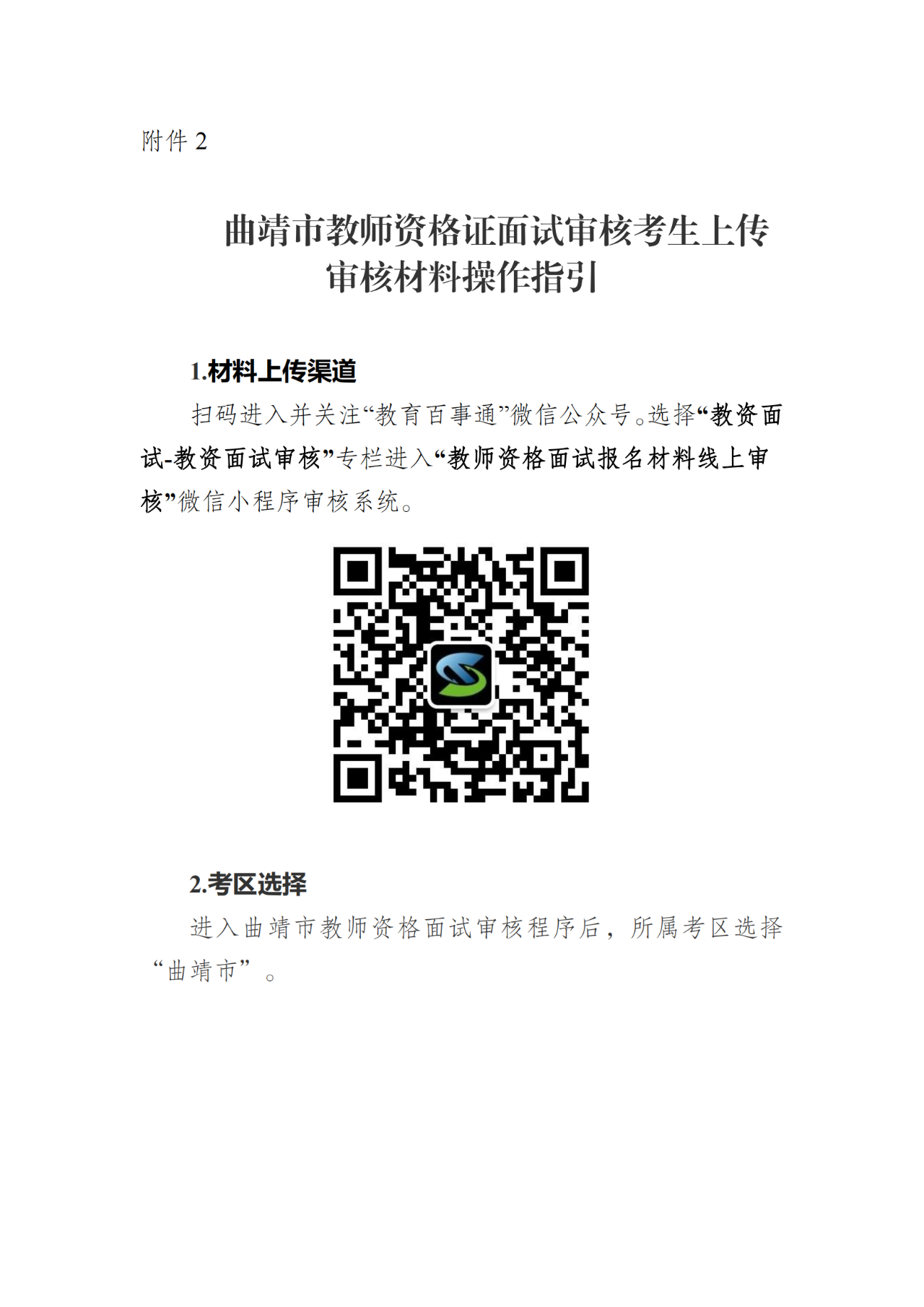 (二)資格審核及材料上傳時間:考生在中小學教師資格考試網(wǎng)面試報名成功后,掃描本公告中二維碼或關(guān)注“教育百事通”微信公眾號,注冊、登錄線上面試審核系統(tǒng),上傳面試審核所需相關(guān)材料(具體操作流程附件3)。