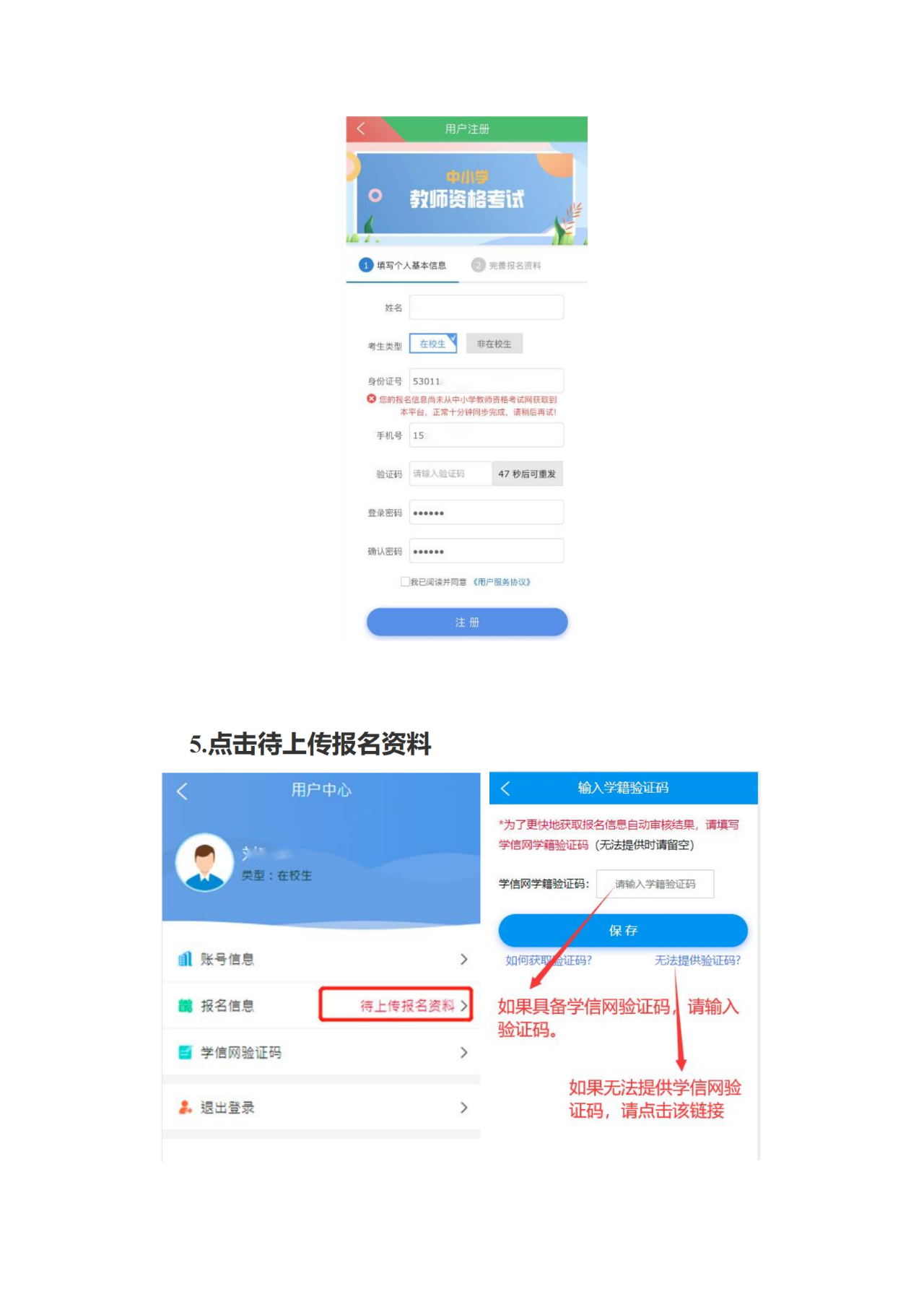 4.審核未通過或未提交資料進行確認審核的考生,在系統(tǒng)設(shè)置的材料上傳截止時間前,審核系統(tǒng)不同步報名信息,即該類考生在中小學教師資格考試網(wǎng)的報考狀態(tài)為“待確認”。