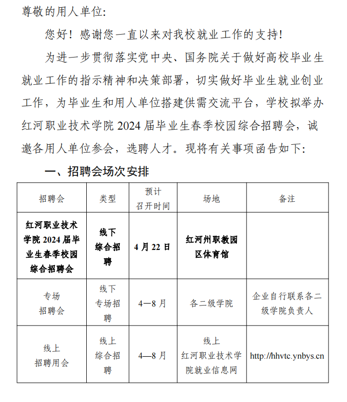 紅河職業(yè)技術(shù)學(xué)院2024屆畢業(yè)生春季校園綜合招聘會邀請函