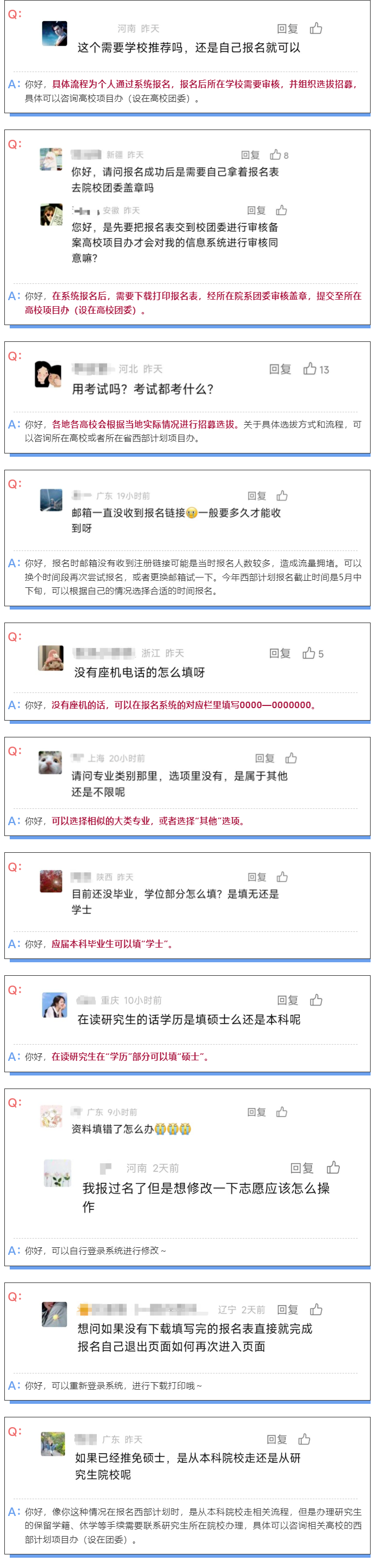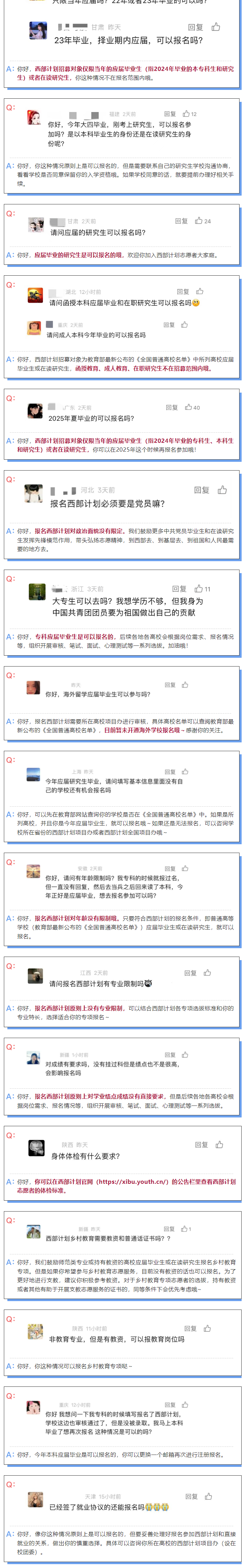 即日起至5月中下旬,2024年普通高等學(xué)校應(yīng)屆畢業(yè)生或在讀研究生,可通過(guò)微信公眾號(hào)“西部志愿匯”(菜單欄中的“我要報(bào)名”)或登錄西部計(jì)劃官方網(wǎng)站(http://xibu.youth.cn),在西部計(jì)劃報(bào)名系統(tǒng)中進(jìn)行注冊(cè)報(bào)名。