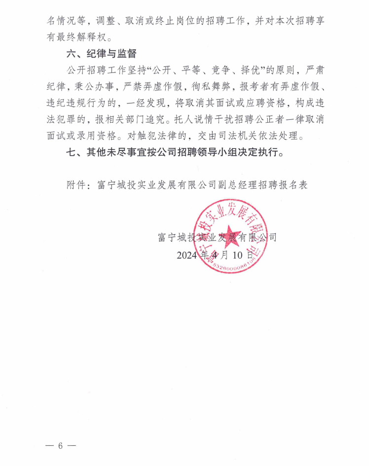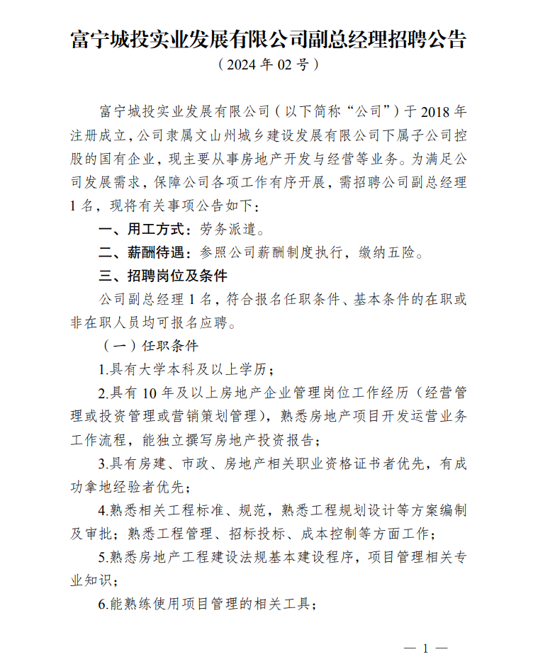 富寧城投實(shí)業(yè)發(fā)展有限公司副總經(jīng)理招聘公告