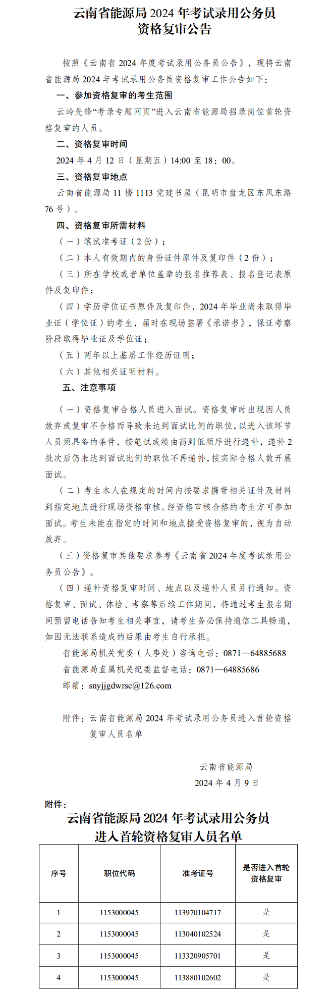云南省能源局2024年考試錄用公務(wù)員資格復(fù)審公告