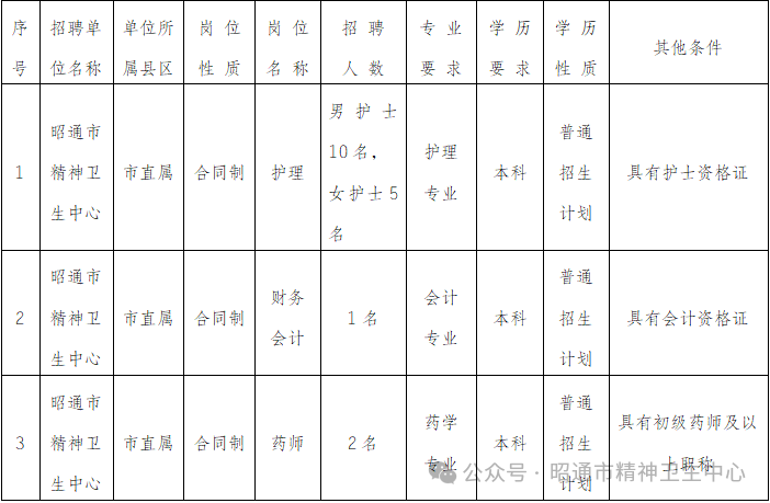昭通市精神衛(wèi)生中心2024年公開招聘合同制人員通告