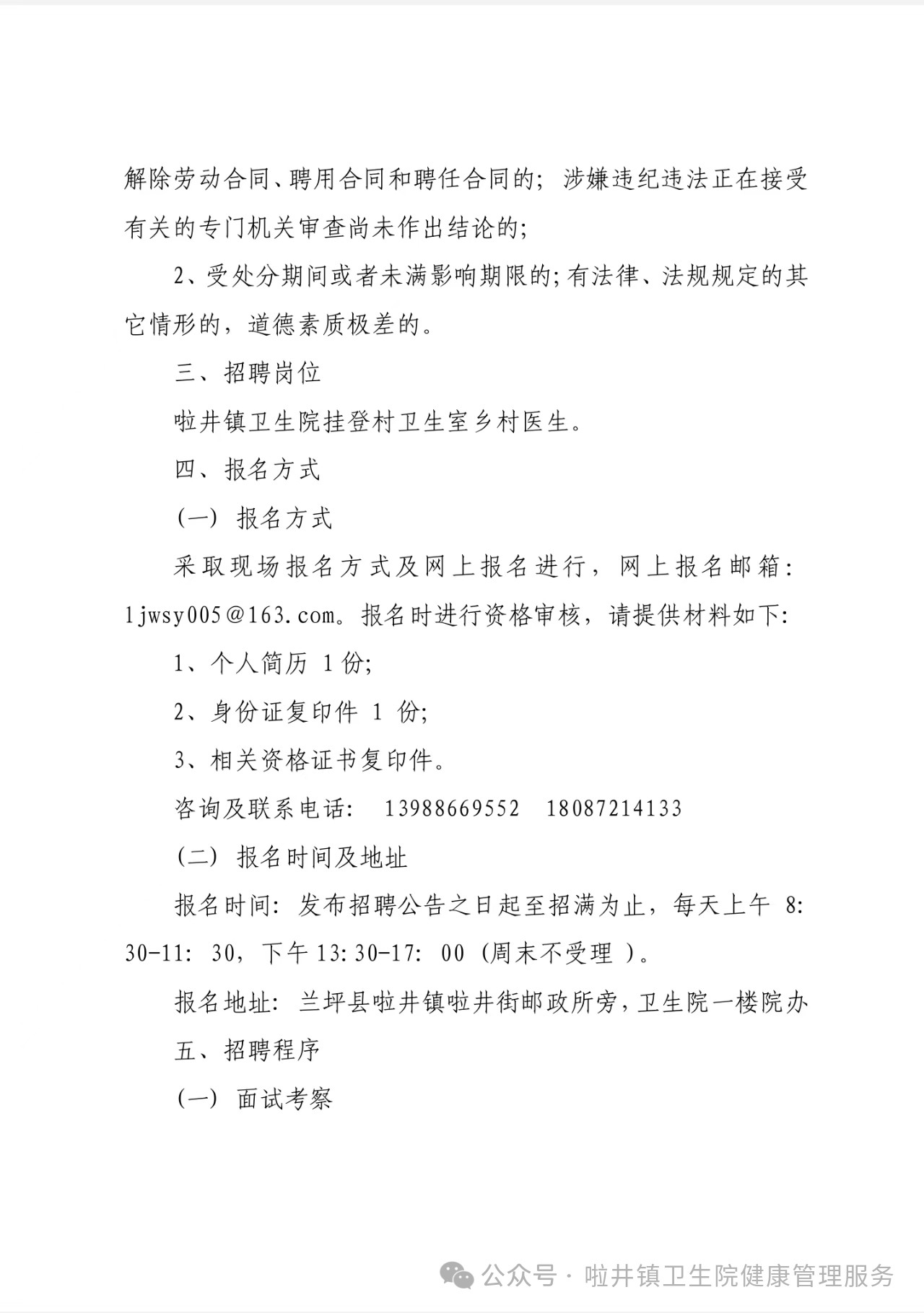 蘭坪縣啦井鎮(zhèn)衛(wèi)生院招聘掛登鄉(xiāng)村醫(yī)生公告