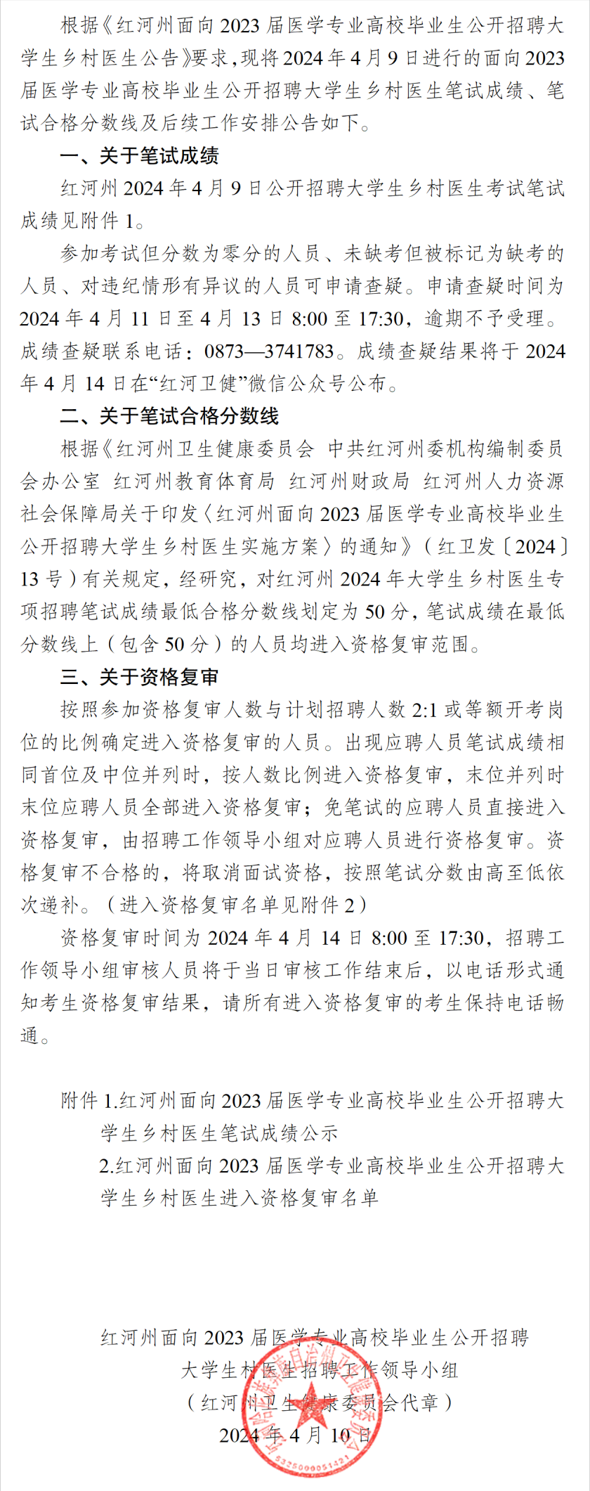附件1:紅河州面向2023屆醫(yī)學(xué)專業(yè)高校畢業(yè)生公開招聘大學(xué)生鄉(xiāng)村醫(yī)生筆試成績公示.xls