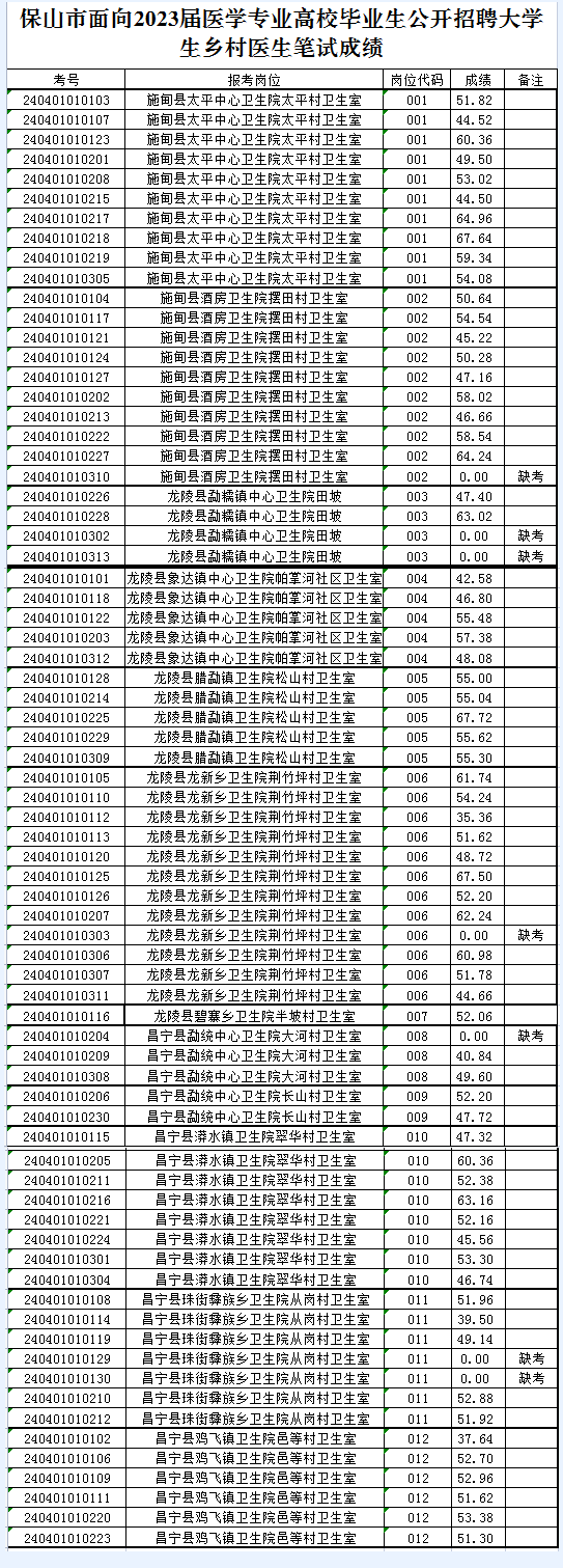 附件:保山市面向2023屆醫(yī)學(xué)專業(yè)高校畢業(yè)生公開招聘大學(xué)生鄉(xiāng)村醫(yī)生筆試成績