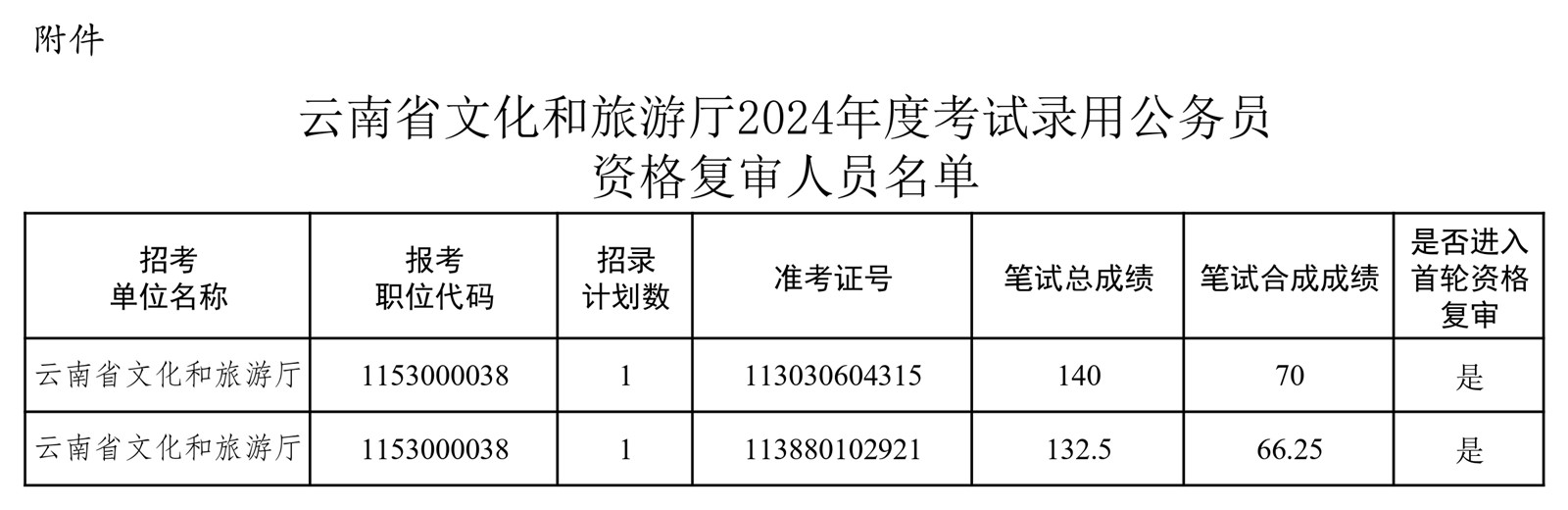 附件:云南省文化和旅游廳2024年度考試錄用公務(wù)員資格復(fù)審人員名單
