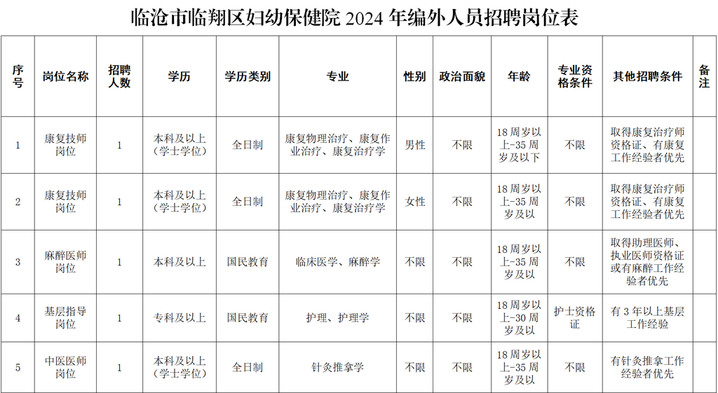 附件1. 臨滄市臨翔區(qū)婦幼保健院2024年編外人員招聘崗位表.docx