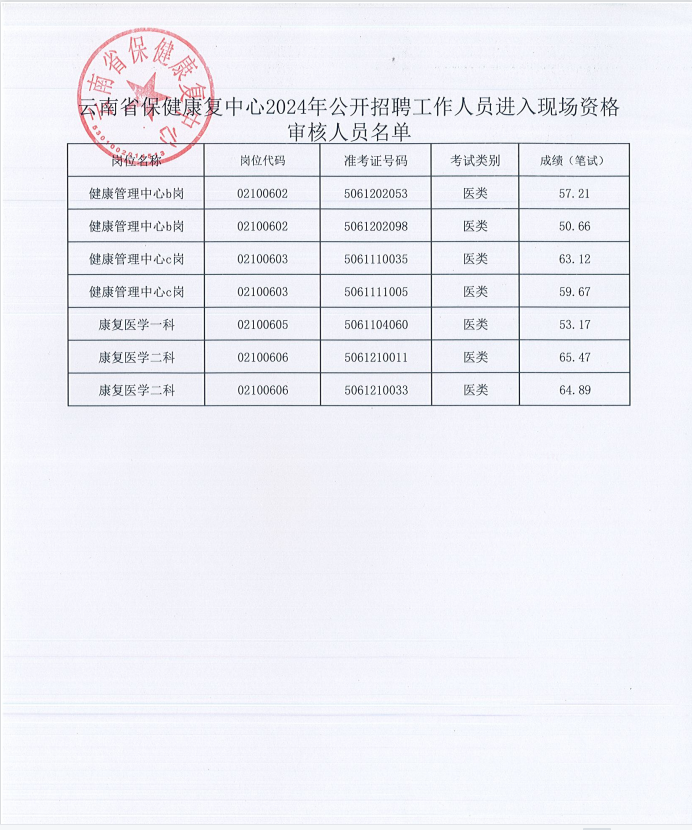 (二)審核事宜云南省保健康復中心工作人員將通過電話通知每一位需要參加現場資格審核的考生,請確保預留聯系方式無誤并保持通訊通暢,報名預留聯系方式無法聯系本人者請務必按時參加審核,否則視為自動放棄;