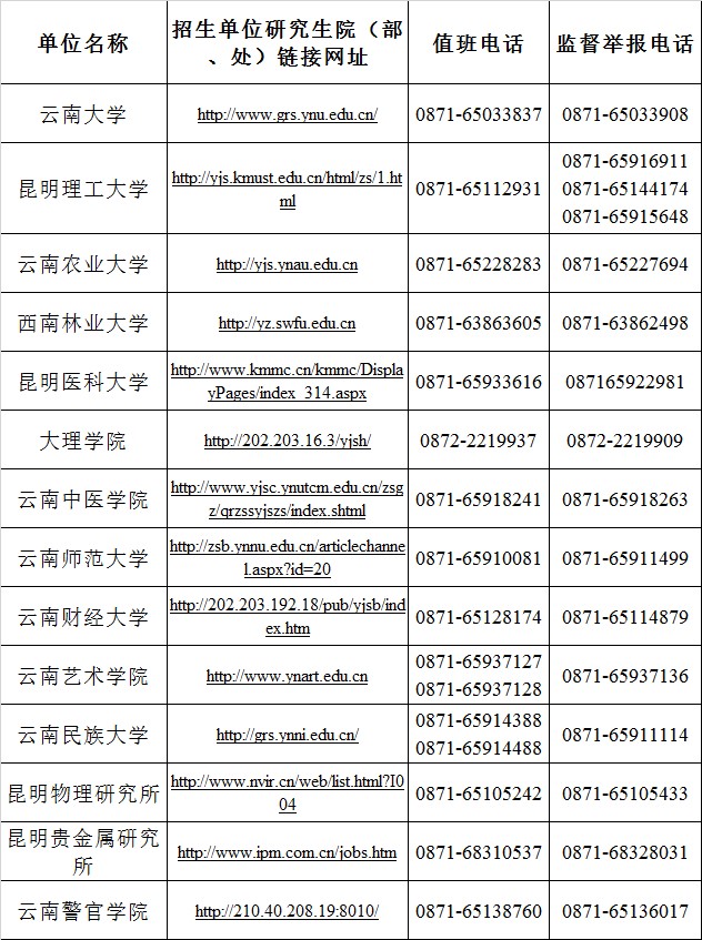 關(guān)于公布我省研究生招生單位聯(lián)系方式及監(jiān)督舉報(bào)電話的通知