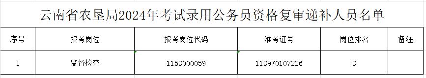 附件:云南省農(nóng)墾局2024年考試錄用公務員資格復審遞補人員名單