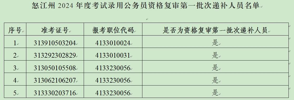 怒江州2024年度考試錄用公務(wù)員資格復(fù)審第一批次遞補(bǔ)有關(guān)事宜的通知