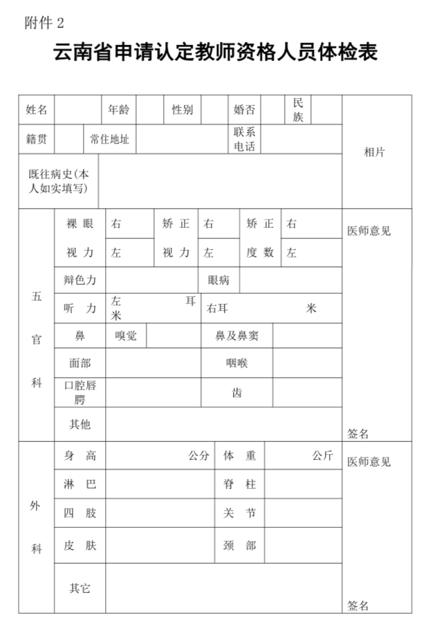 2.云南省申請(qǐng)教師資格認(rèn)定人員體檢表