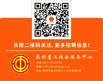 本公告最終解釋權(quán)歸昆明惠工社會(huì)服務(wù)中心所有,后續(xù)招聘相關(guān)信息敬請(qǐng)關(guān)注“昆明惠工中心”微信公眾號(hào)。