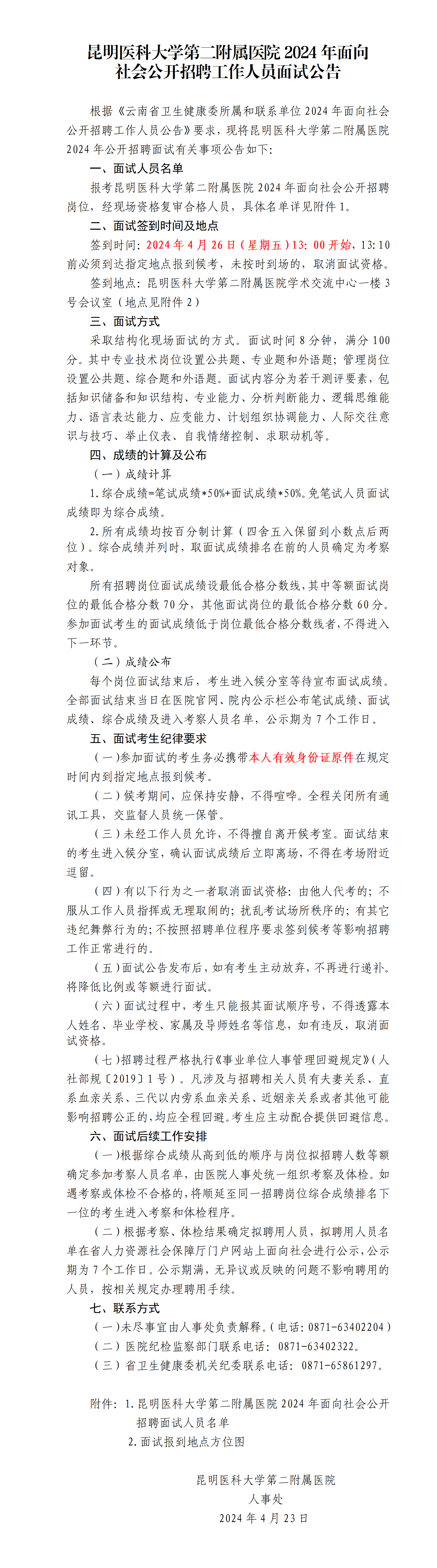 附件1:昆明醫(yī)科大學(xué)第二附屬醫(yī)院2024年面向社會(huì)公開招聘面試人員名單.pdf