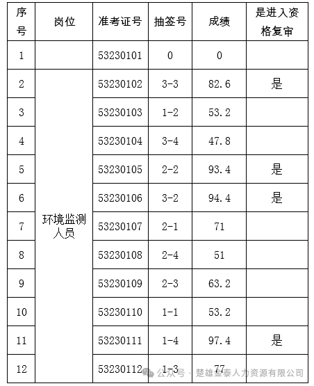 2024年勞務(wù)派遣人員實(shí)驗(yàn)室操作考核成績(jī)及進(jìn)入資格復(fù)審人員公示