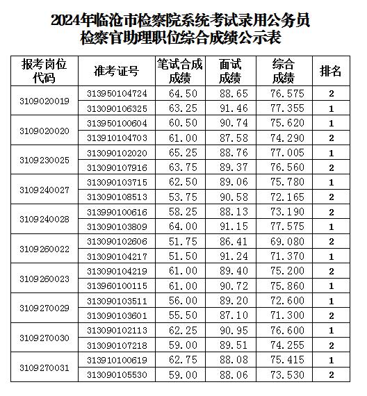 2024年臨滄市檢察院系統(tǒng)考試錄用公務(wù)員檢察官助理職位綜合成績公示